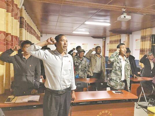 郭彩廷带领胆扎社区第一党支部党员重温入党誓词