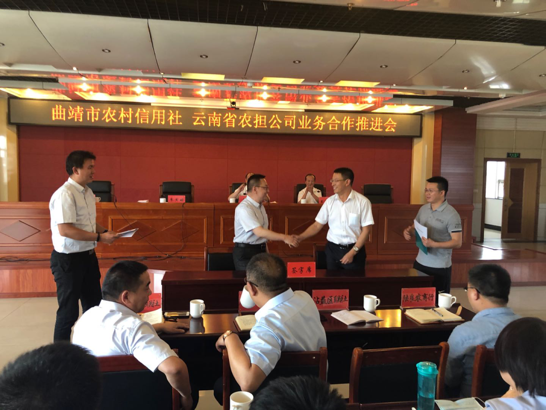 5月13日,公司廖寅皓副总经理带队赴曲靖与曲靖农商行进行座谈。双方就曲靖地区银担合作及业务发展取得的成绩、存在的不足、下步的工作计划、改进措施等具体事项进行了探讨和磋商,交换了意见,并共同签署了业务合作协议。这标志着农担与农信将继续深化合作,同心、同行、同步推进业务发展,为曲靖9县(市、区)农业发展提供金融支持。