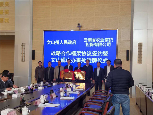 在办事处成立仪式上,省农担公司还与玉溪市、文山州、曲靖市、大理州签订了《战略合作框架协议》,其他办事处所在州市近期也将与省农担公司签署《政担战略合作协议》,加之前期省农担公司与银行达成的“9:1”风险比例分担,形成省农担公司、政府、银行“6:3:1”的 “政银担”风险分担机制。“贴近主体、覆盖全省、紧密可控、运行高效”的农业信贷担保服务网络体系已基本形成。