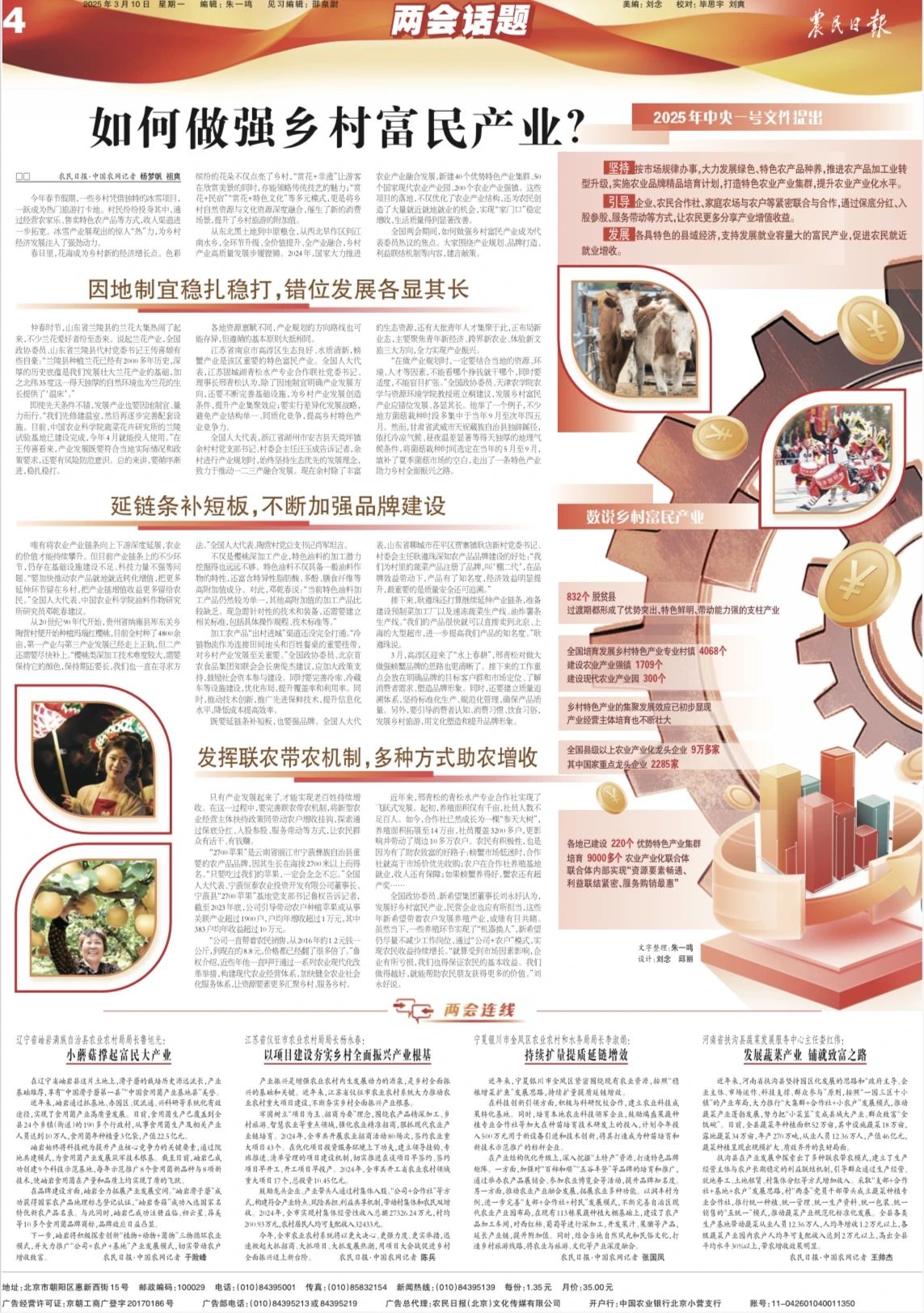 全国两会期间,如何做强乡村富民产业成为代表委员热议的焦点。大家围绕产业规划、品牌打造、利益联结机制等内容,建言献策。