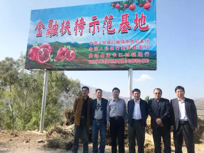 4月12日,农担公司董事长郭影与曲靖市财政局、会泽人行、会泽长江村镇银行及其他几家金融机构领导一行到会泽县娜姑镇干海子软籽石榴村进行实地考察调研。