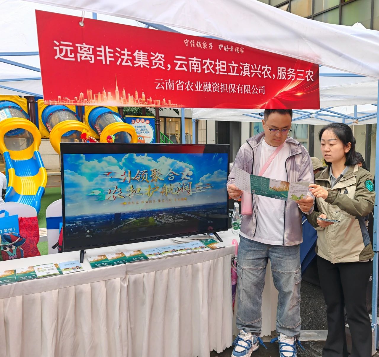 省农担公司设立专门咨询台,通过发放业务宣传折页,播放公司宣传片,积极为参与群众讲解农业融资担保政策。用通俗易懂的语言,结合“虚假农业项目融资”和“虚假担保”等典型案例,为老百姓深度剖析非法集资分子利用群众对政策不熟悉、渴望低成本融资等心理实施诈骗的套路;并现场提醒群众:“选择农业担保服务,认准云南农担官方渠道”,引导群众通过正规担保机构获取金融服务,切实保护自身合法权益。