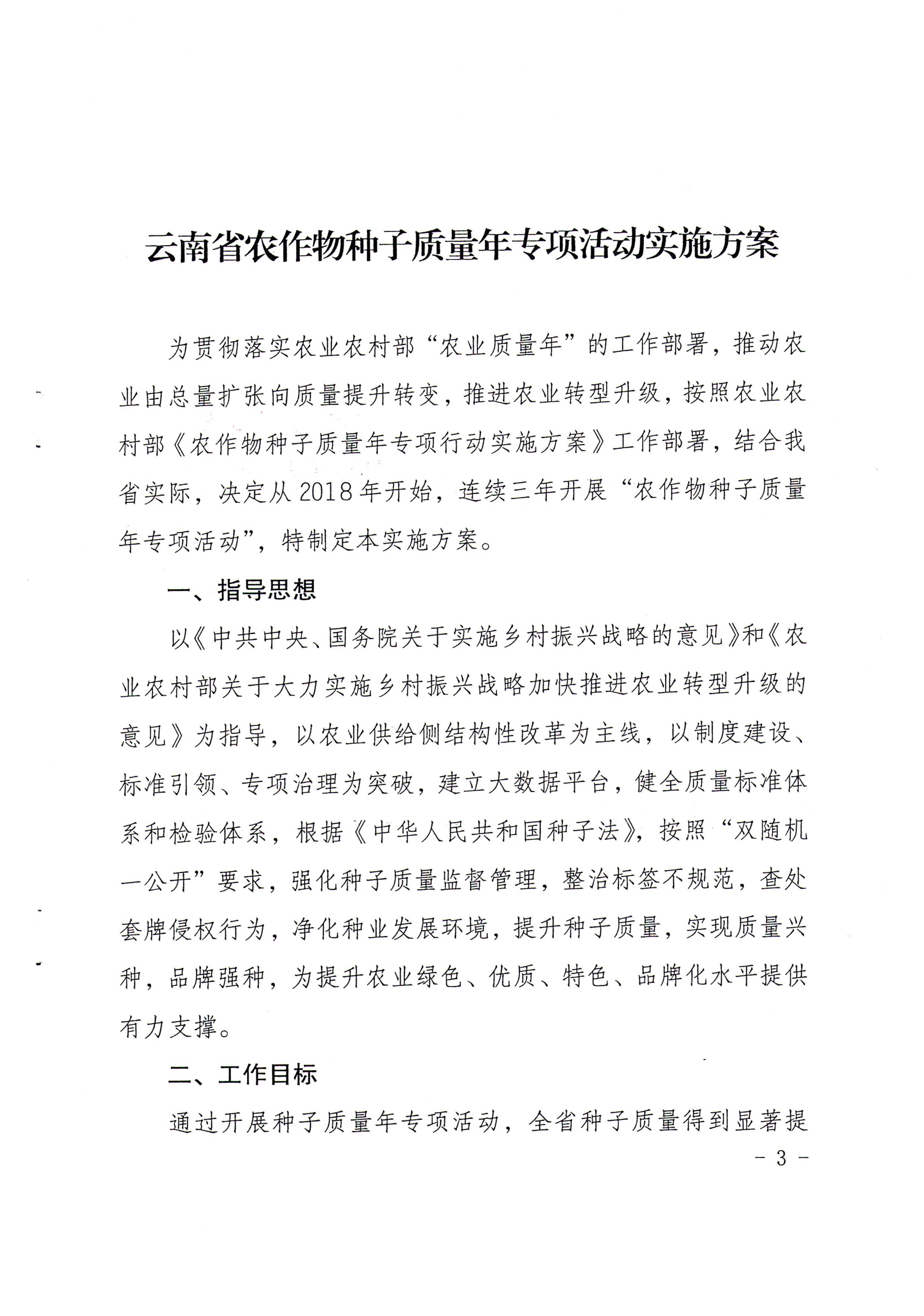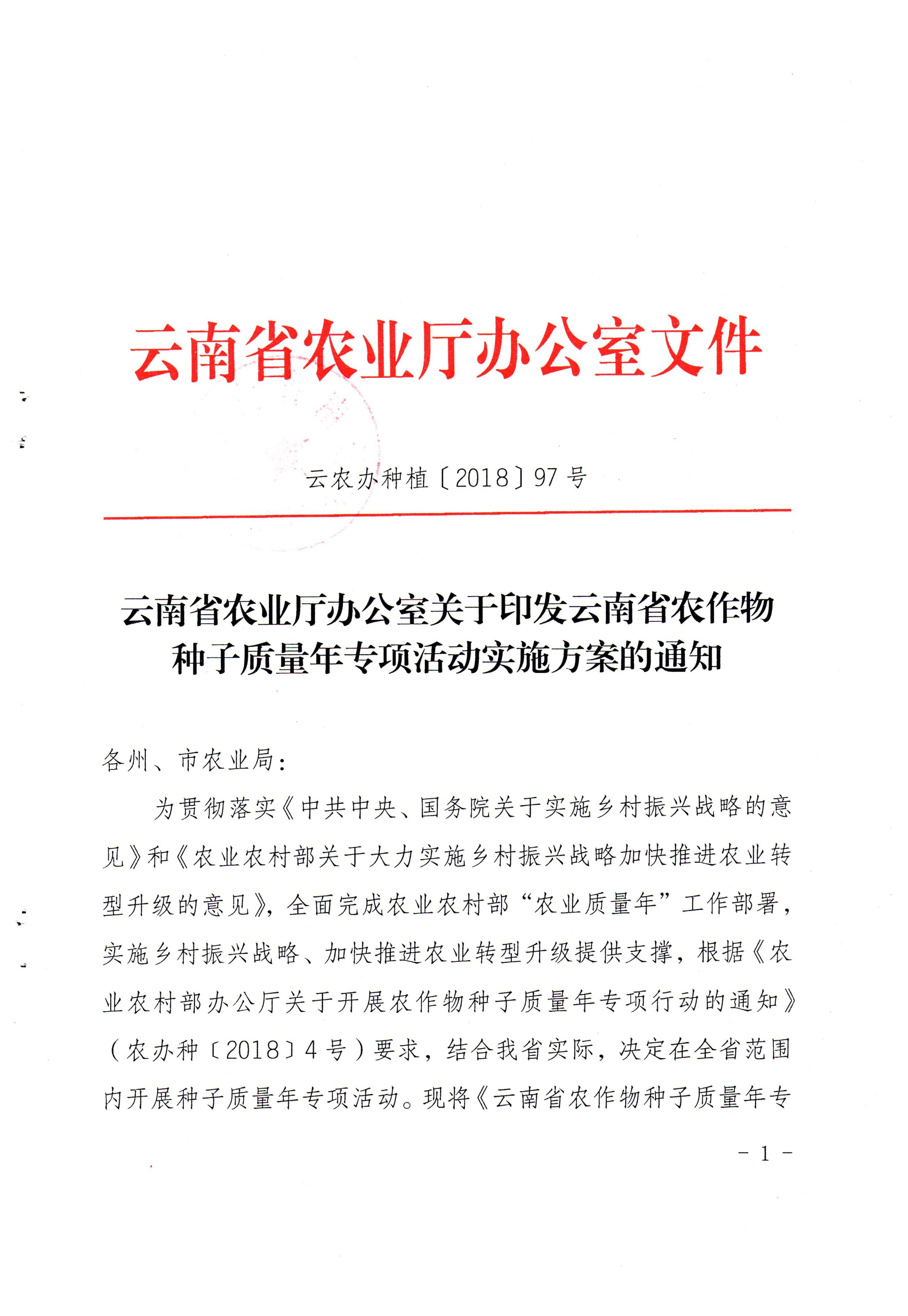 云南省农业厅办公室关于印发云南省农作物种子质量年专项活动实施方案的通知