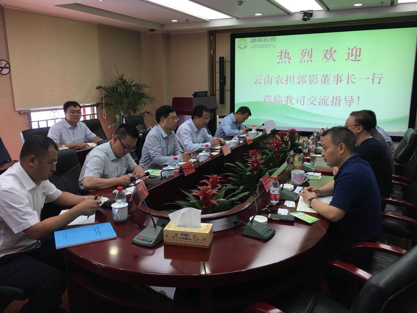 5月17日,郭影董事长、杜开波总经理、廖寅皓副总经理率农担一部、二部、风控部、机构部到湖南省农业信贷担保有限公司进行学习交流。