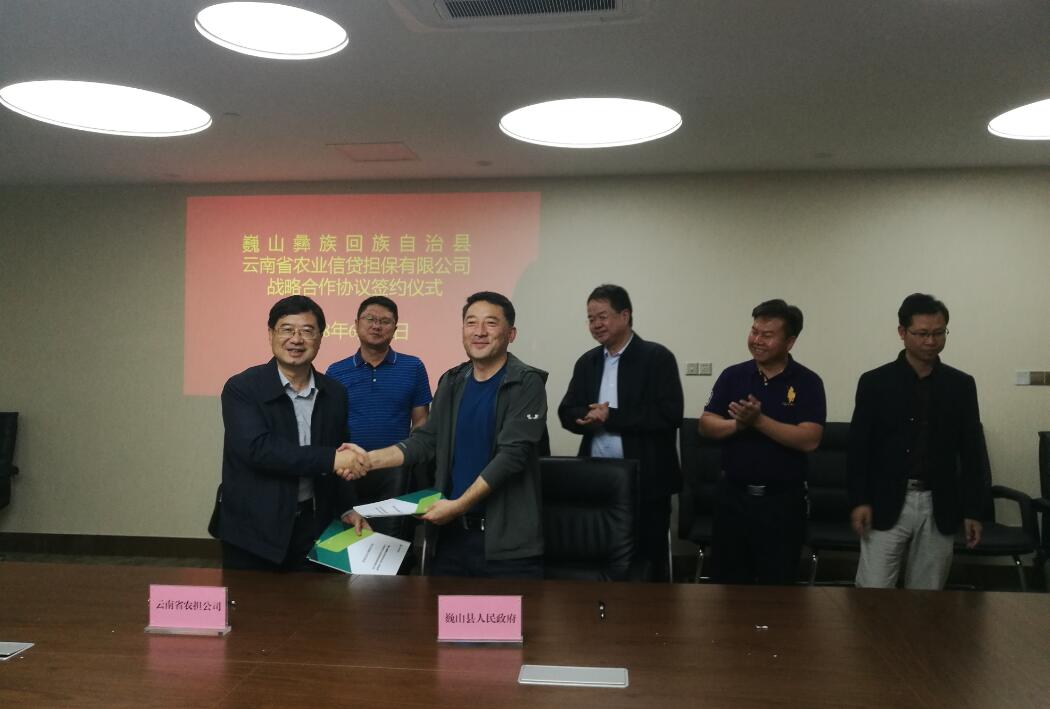 6月14日上午,公司与巍山彝族回族自治县签订了战略合作协议。巍山县县委副书记、县长王利伟率县财政局、农业局及巍山县农村商业银行与省农担公司进行座谈,省农担公司郭影董事长、杜开波总经理参加会议,双方就共同推进巍山县农担工作深入交换意见。