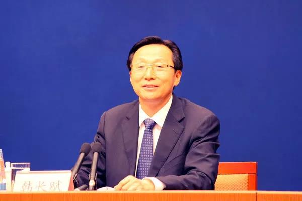 农业农村部部长韩长赋介绍“中国农民丰收节”有关情况。农业农村部网站 韦科摄