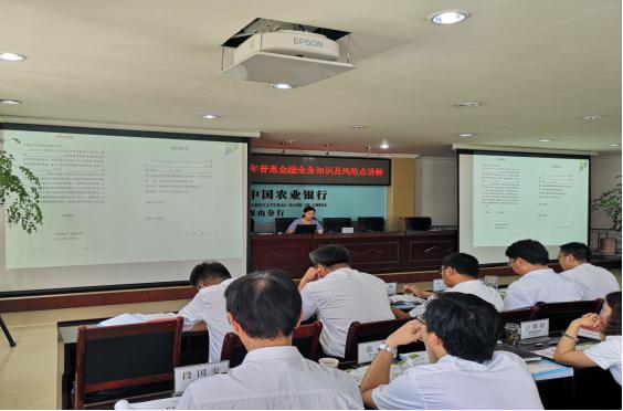 2018年8月6日,云南省农业信贷担保有限公司保山办事处接受中国农业银行三农金融部王明学经理邀请,在中国农业银行保山分行2018年普惠金融业务知识及风险点讲解会议上,就云南省农业信贷担保有限公司担保业务开展培训。中国农业银行保山市分行信贷部门全体员工、各县(市)支行、市分行营业部的副行长(副总经理)、各行(部)公司业务部(客户部)、各行行长(总经理)参加会议。