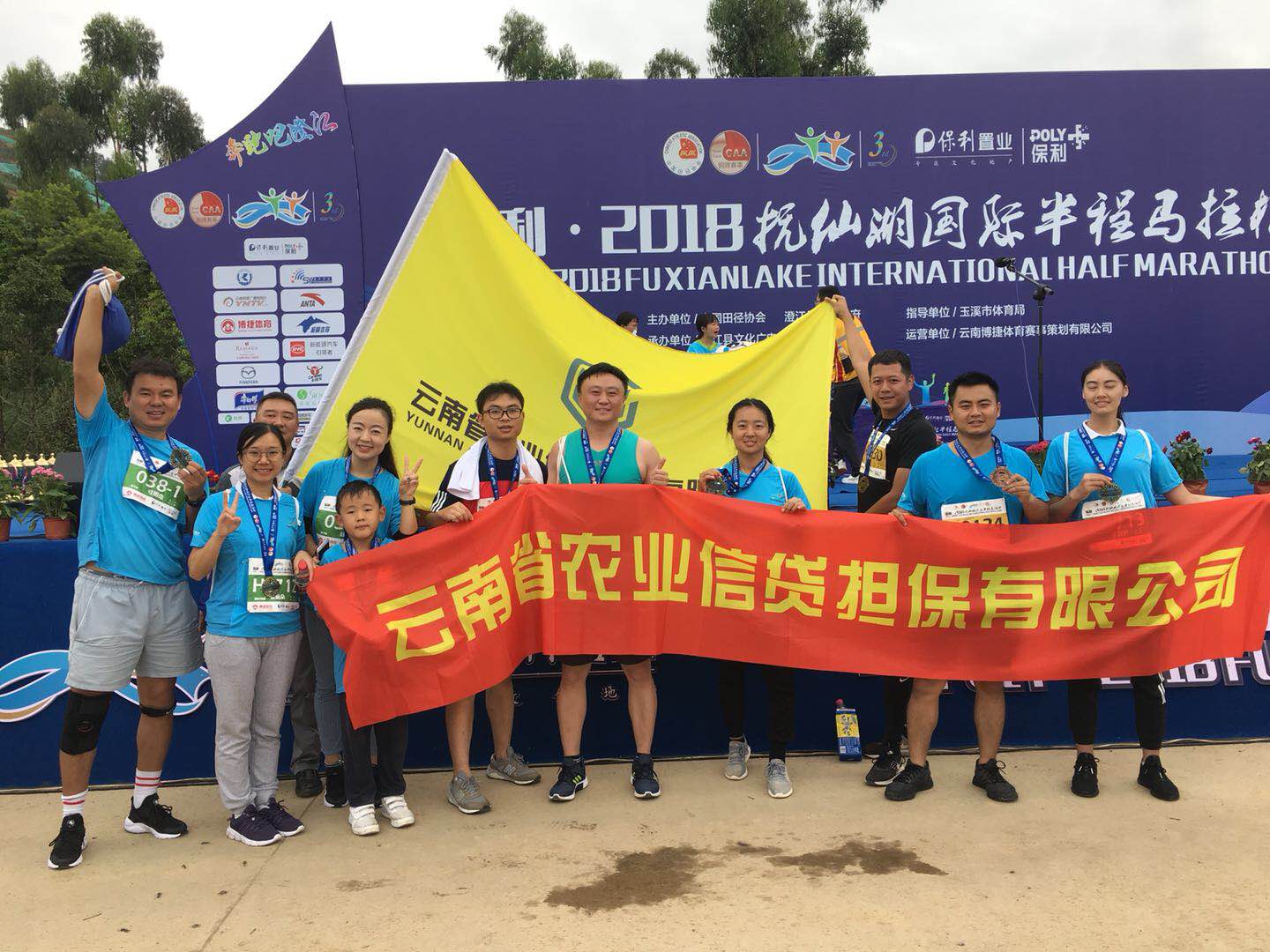 2018抚仙湖国际半程马拉松于9月16日7时30分在澄江县月亮湾湿地公园鸣枪开跑。公司工会就近组织部分员工参加了此次活动。此次赛事由中国田径协会、澄江县人民政府主办,有1万人参加。省公司、玉溪、普洱、西双版纳等办事处共12名员工报名参加,包括十公里、迷你马拉松、亲子跑三大项目。工会对参加活动员工给予积极支持,组织啦啦队助阵鼓劲,并做好了相关后勤和安全保障。参跑员工一路高举公司旗帜、展示公司布标,在激发潜能、超越自我的同时宣传公司团队文化、弘扬公司“立滇为农”宗旨,把“绿色发展”与“健康生活”融入公司核心价值观,全方位展示云南农担人的公司文化之美、健康之美、发展之美。