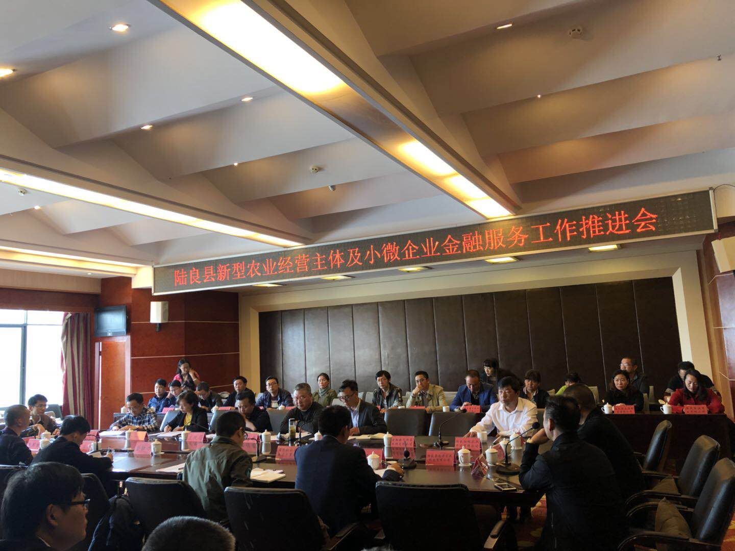 10月15日,曲靖办事处受邀参加陆良县新型农业经营主体及小微企业金融工作服务推进会,会议由陆良县政府办主持,与会人员包括陆良县副县长刘国俊、曲靖市人民银行中心支行副行长李琰、陆良县财政局、农业局等职能部门领导、陆良县各金融机构以及当地乡镇企业代表。会议上,曲靖办事处业务员陆伟对我公司成立背景、政策、业务开展情况、合作流程等相关事宜进行了介绍。各银行代表对银行贷款政策进行了介绍,当地企业就经营情况进行了介绍并提出了企业融资过程中遇到的难题。随后政、银、担、企就担保业务合作如何开展进行了热烈讨论。最后,刘国俊副县长对本次金融会议给予了肯定并作出指示,各金融机构要大胆进行金融产品创新,各部门加大力度支持小微企业的发展壮大。本次会议提升了我公司在陆良县的知名度,为公司在陆良县进一步发展业务打下了坚实基础。