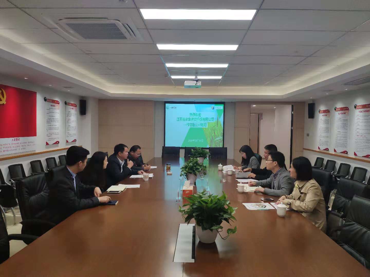 10月24日上午,江苏农担公司副总经理郑一鸣等一行4人到公司调研学习。两家兄弟公司举行了工作经验交流座谈会,公司总经理杜开波及风险控制部、机构合作部、综合管理部等公司相关部门参加会议。