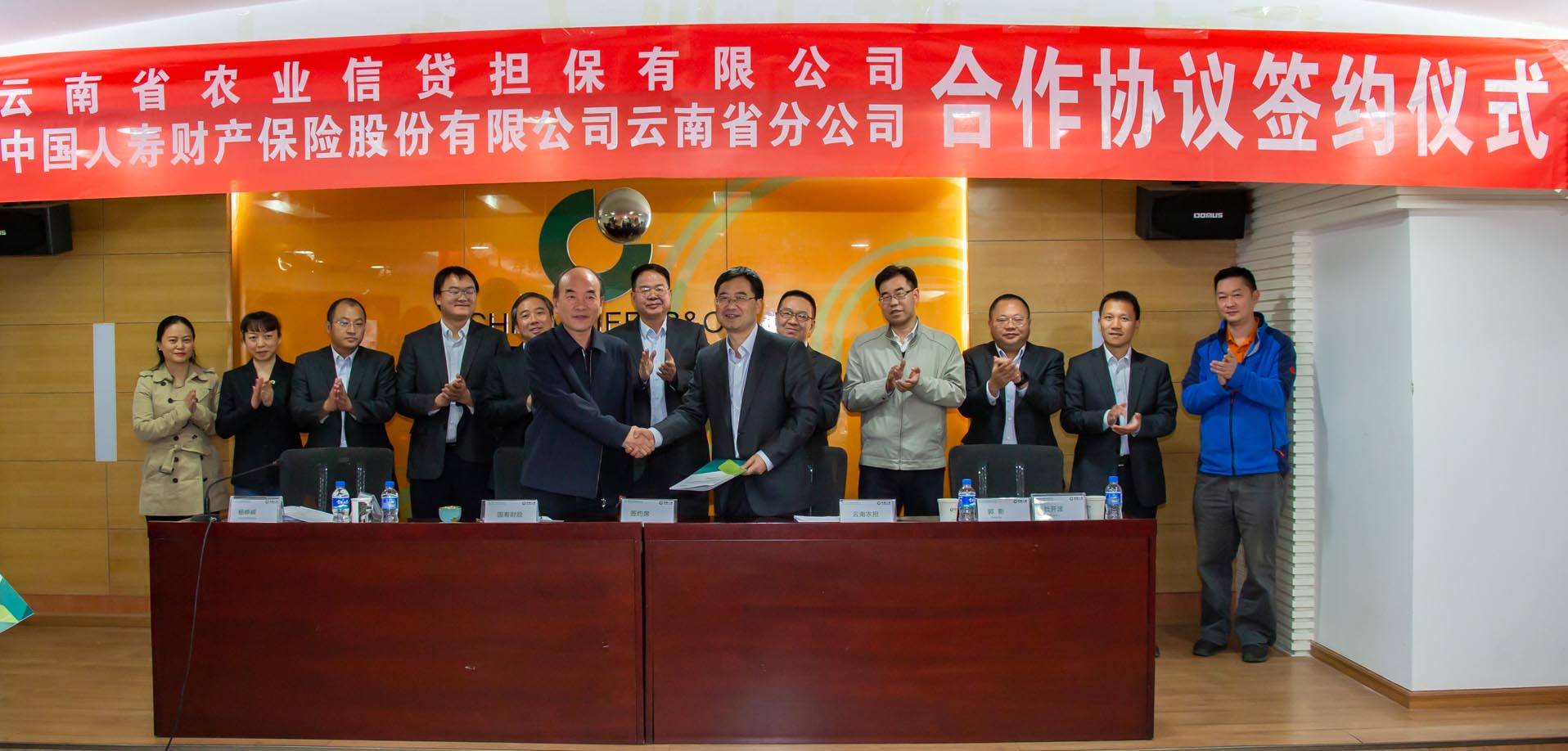 11月16日下午,云南省农业信贷担保有限公司与中国人寿财产保险股份有限公司云南省分公司签订了合作协议。