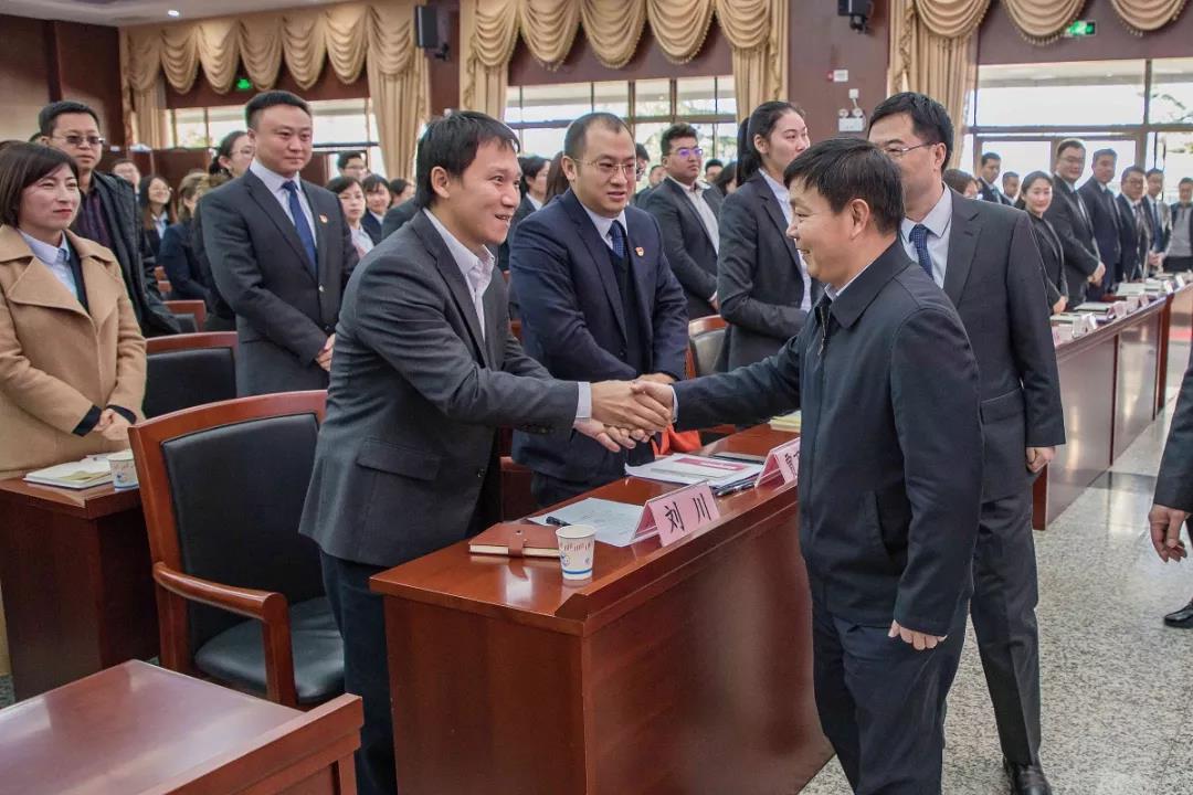 在总结会会场,张岩松厅长与省农担公司优秀员工亲切握手,一一询问大家的工作情况。张岩松厅长对2018年省农担公司取得的不俗成绩给予了充分肯定。他表示,全体农担员工按照省委、省政府的安排部署,开拓创新、锐意进取,机构覆盖全省16个州市,业务覆盖118个县,圆满完成新增涉农贷款担保50亿的任务,是大家共同努力、辛勤工作的成果,值得鼓励和祝贺。