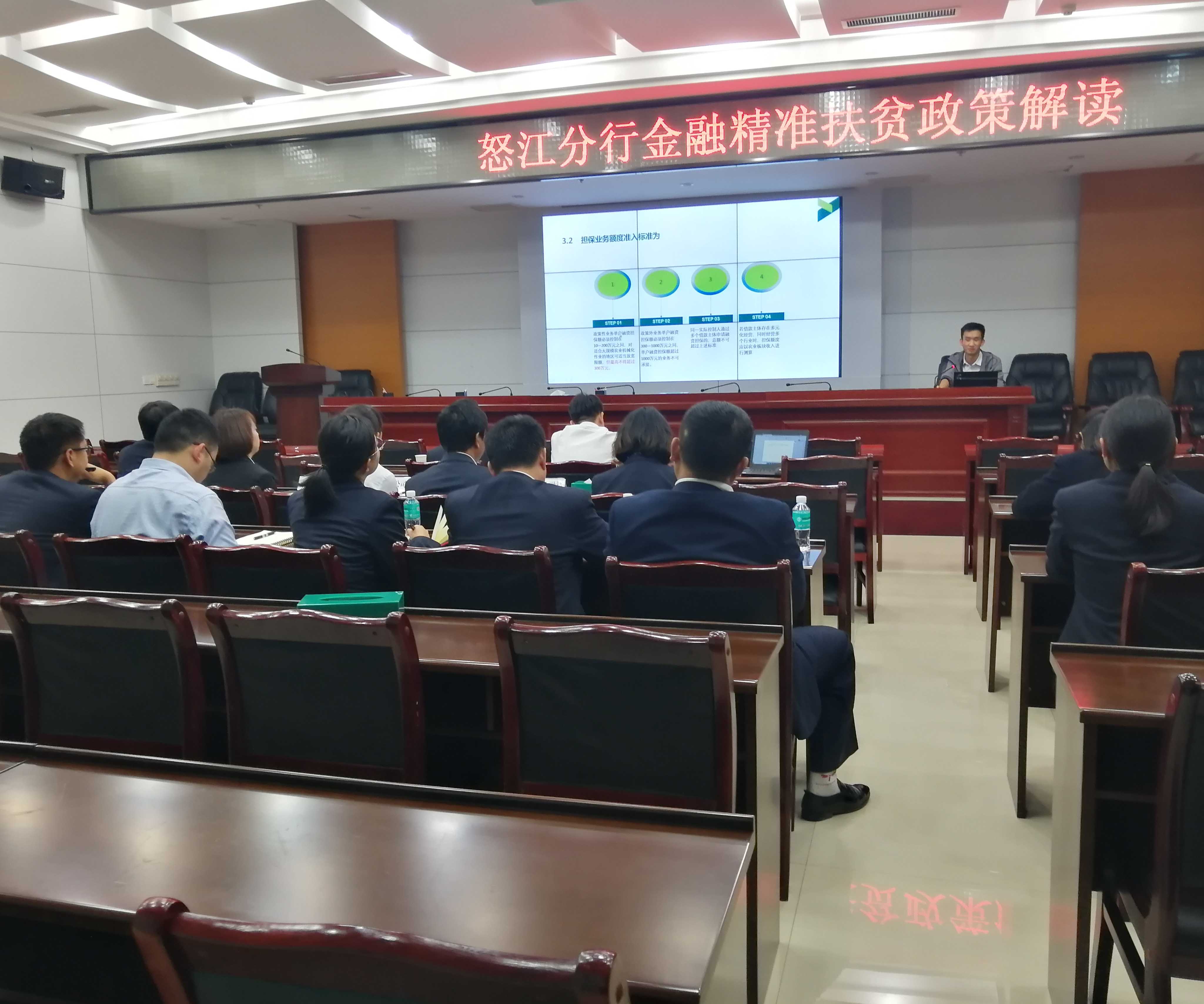 2019年3月27日,泸水办事处全体人员参加了农业银行泸水市支行的“银担保座谈会”,并现场开展了业务培训。农业银行怒江州副行长李磊、怒江州副行长段玉珊,泸水市副行长李婧,和各县市分行客户经理出席了会议。