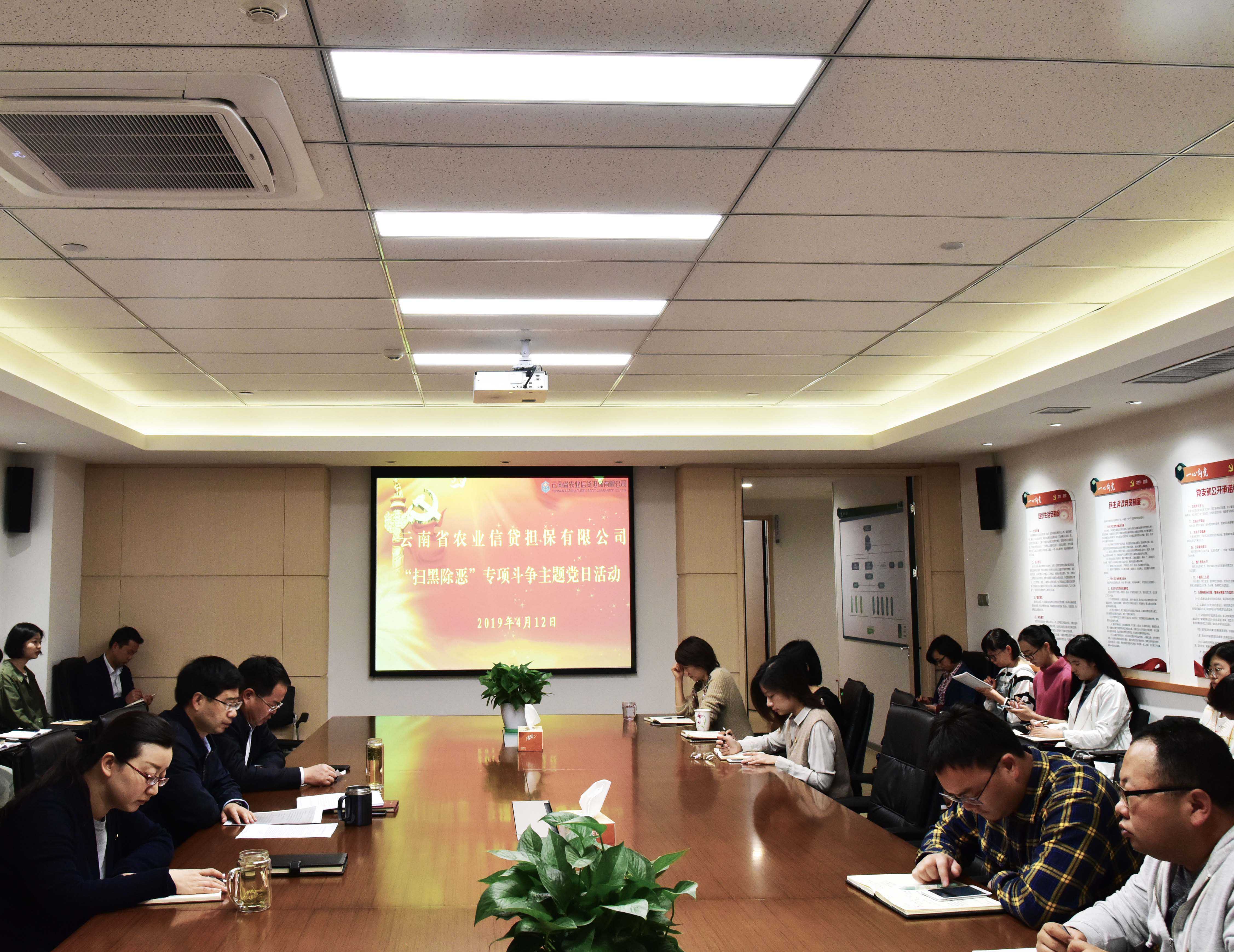 开展扫黑除恶专项斗争,是以习近平同志为核心的党中央作出的重大决策,是推进社会治理,促进社会和谐,提高广大人民群众获得感、幸福感、安全感的重大举措。按照上级关于开展扫黑除恶专项斗争工作部署,云南省农业信贷担保有限公司党支部积极响应,深入开展“扫黑除恶--云南农担在行动”系列主题党日活动,引导公司全体党员和群众积极参与到扫黑除恶专项斗争上来。