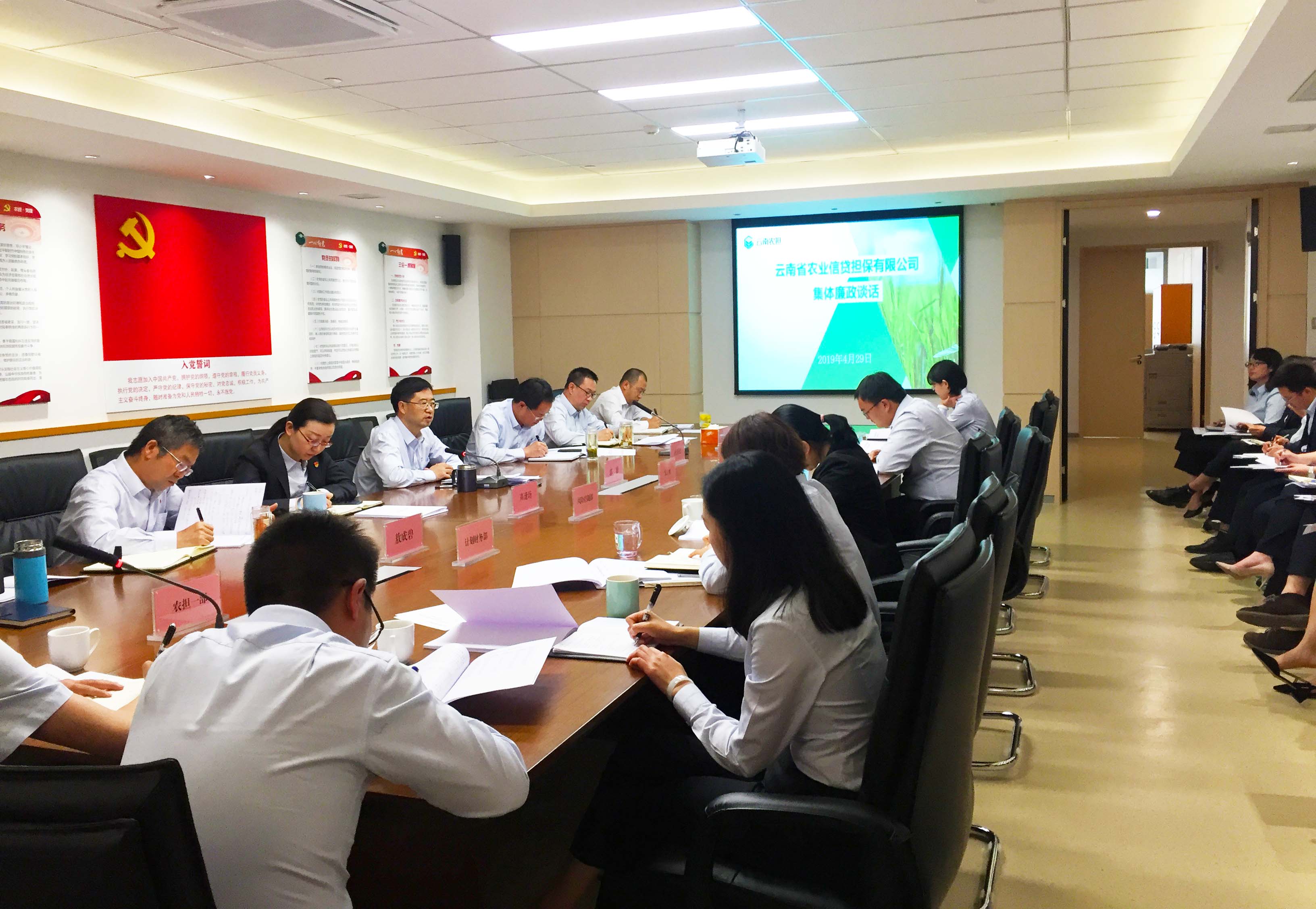 4月29日,云南省农业信贷担保有限公司利用召开春季业务推进会之机,开展了集体廉政谈话。公司党支部书记、董事长郭影同志向参会的公司领导、各部门及各分支机构负责人、业务主管等进行了集体廉政谈话。