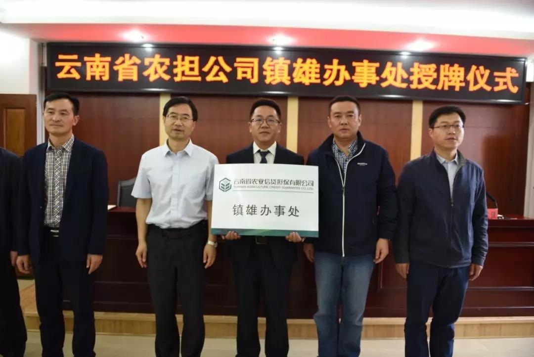 6月12日,云南省农业信贷担保有限公司举行镇雄办事处授牌仪式,并与新型农业经营主体、农行镇雄县支行签订协议,现场发放担保贷款100万元。镇雄县县委副书记陈韬,县委常委、常务副县长朱双凤,县委常委、副县长李建强,省农业信贷担保有限公司董事长郭影出席办事处授牌仪式。县级相关部门、金融机构主要负责人,部分新型农业经营主体代表参加仪式。