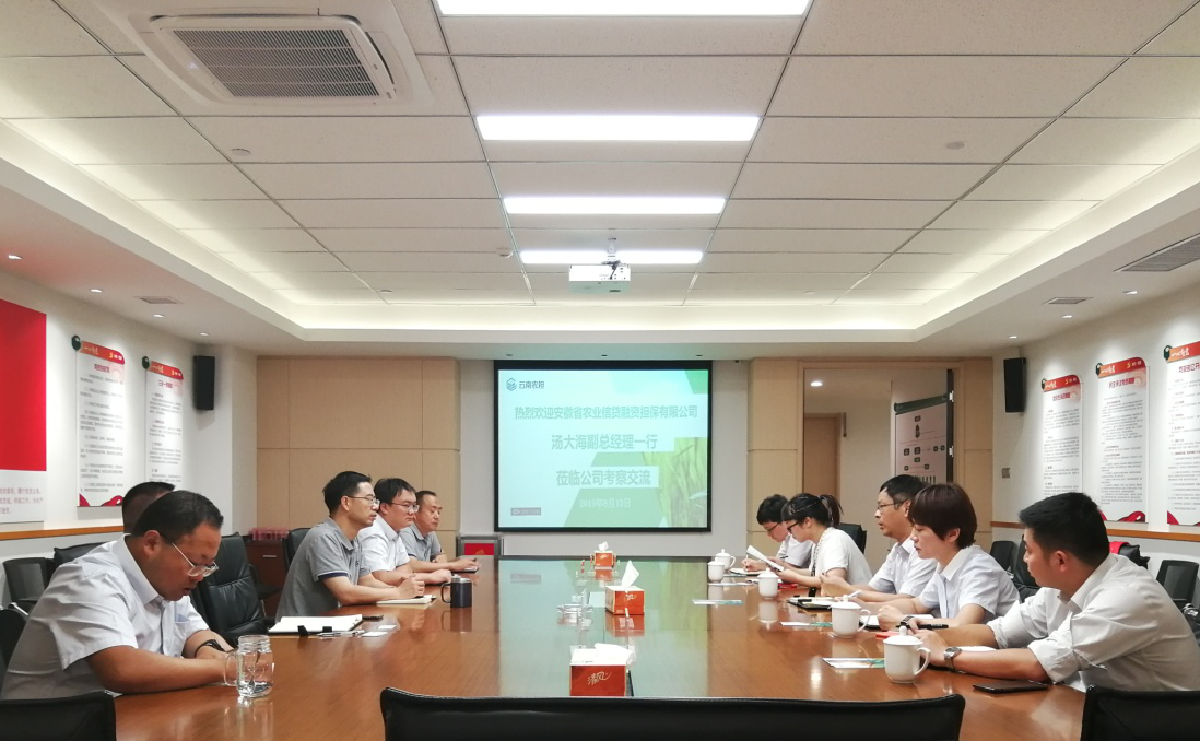 7月23日-7月25日,安徽省农业信贷融资担保有限公司(以下简称安徽农担)副总经理汤大海率队赴云南省农担公司调研交流。公司董事长郭影、副总经理廖寅皓率风控部、战略部与安徽农担公司进行了座谈交流。