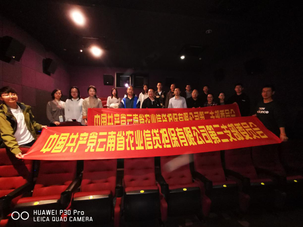 为庆祝中华人民共和国成立70周年,弘扬爱国主义精神,激发公司党员及非党员职工爱党爱国热情。10月25日,云南农担第二党支部组织第二支部党员及职工代表统一观看爱国教育主题电影《我和我的祖国》,《我和我的祖国》讲述了70年来祖国的变化,7个故事,从个体出发,聚焦点放在一个个中国人身上,影片所呈现的真实场景让每一个中国人感到自豪和骄傲。影片不仅彰显了我国的雄厚实力,更体现了这些辉煌成就的背后付出,反映了人民群众在各行各业撸起袖子认真干,努力干,不畏辛苦,开拓进取的精神,我们感受到了国家之强盛,中国人的民族自信和自豪感油然而生。