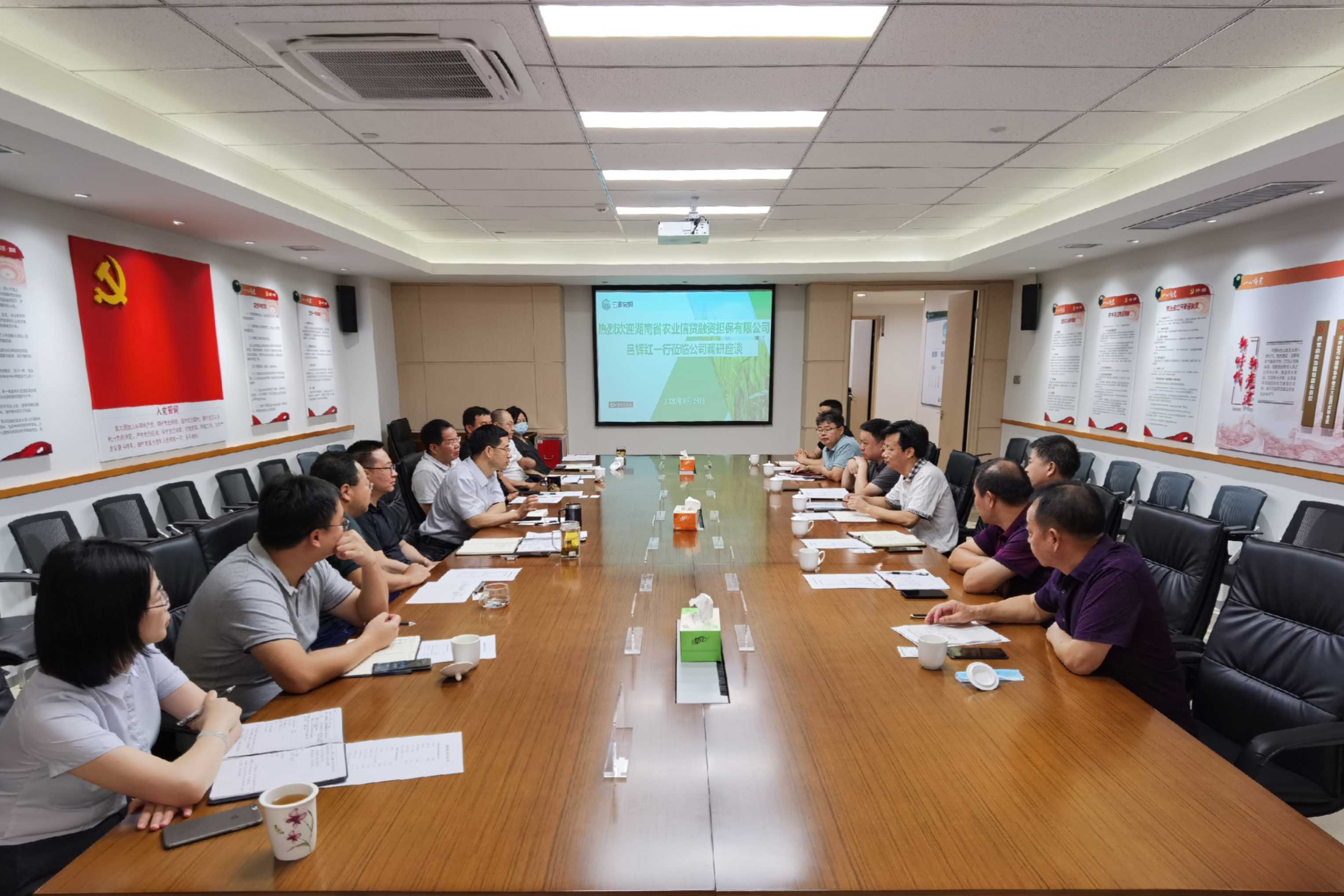 8月27日-8月28日,湖南省农业信贷融资担保有限公司(以下简称湖南农担)吕辉红总经理率队赴云南农担调研交流。云南农担公司董事长郭影、总经理杜开波、副总经理廖寅皓率农担业务一部、二部、风控部、战略部、计划财务部、人力资源(党群工作)部与湖南农担公司进行了调研座谈。