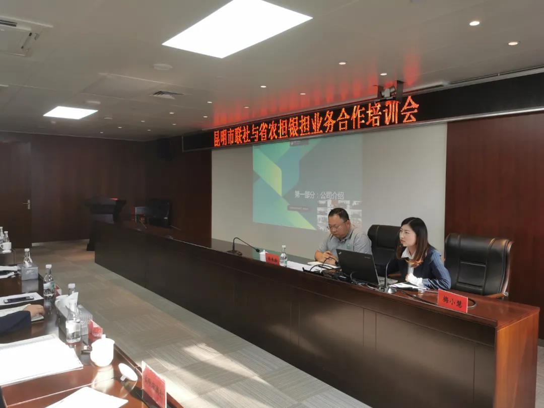 为进一步加深与昆明地区15家信用社/农商行合作,2020年11月18日农担二部负责人张长浩携昆明业务团队到昆明市农村信用合作联社参加“昆明市联社与省农担银担业务合作培训会”,会议通过主分会场形式同时进行,主会场由昆明市联社个金部全员、信贷管理部全员、宜良信用社、寻甸农商行、嵩明农商行相关领导及我公司人员参会,分会场由昆明市15家县级联社领导、信贷部全员、个金部全员以及各支行业务骨干通过视频连线的方式参会。会议由市联社个金部负责人尹夔主持。