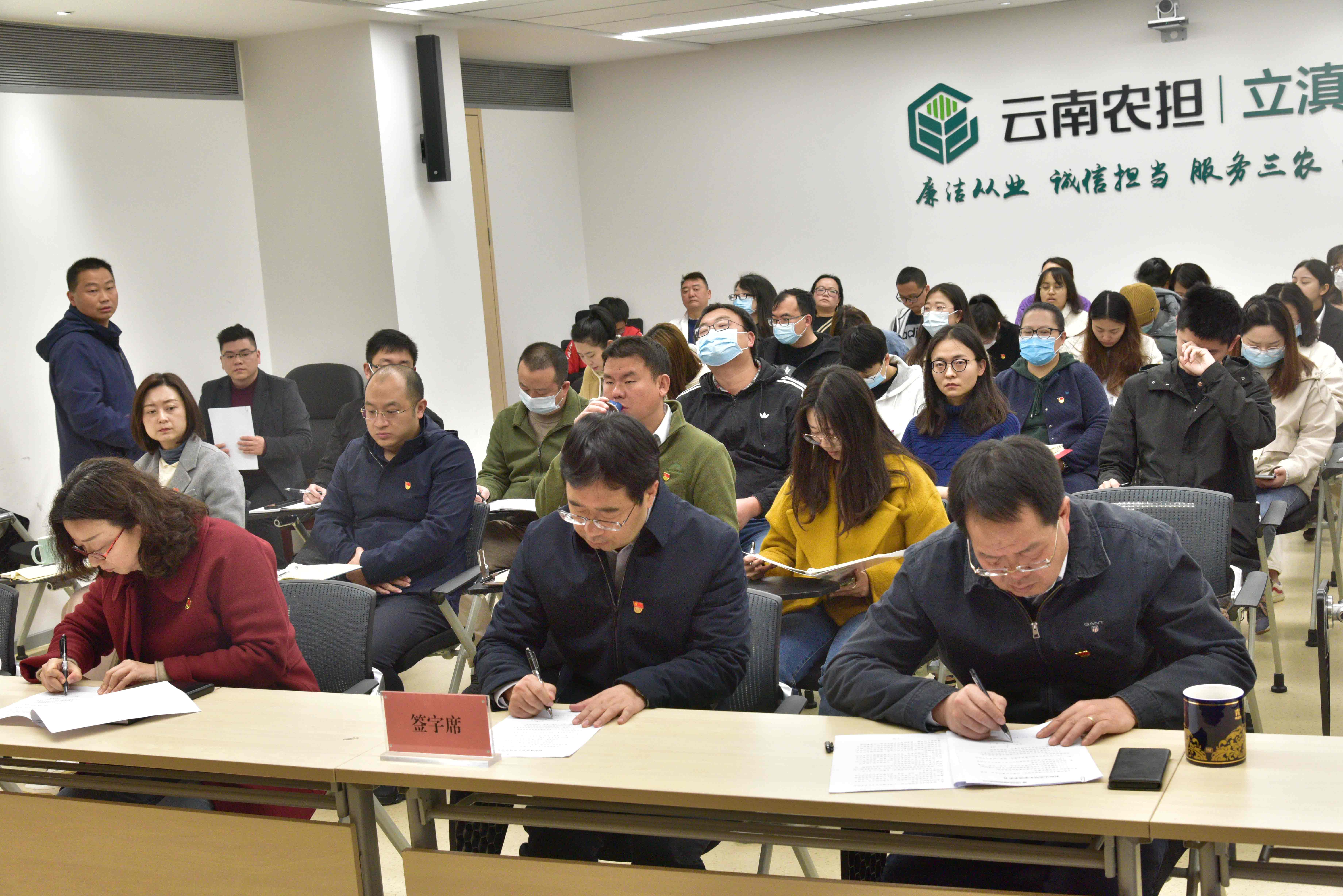 宣讲结束后,组织员工签订了《农担从业禁止事项承诺书》。随后,李建华同志作提升员工廉洁和服务意识培训,他在培训会上讲到,只有在思想上勤自警、在工作上常自律、在生活上多自重、在作风上重自省,才能强化员工廉洁自律意识,提升员工服务水平。