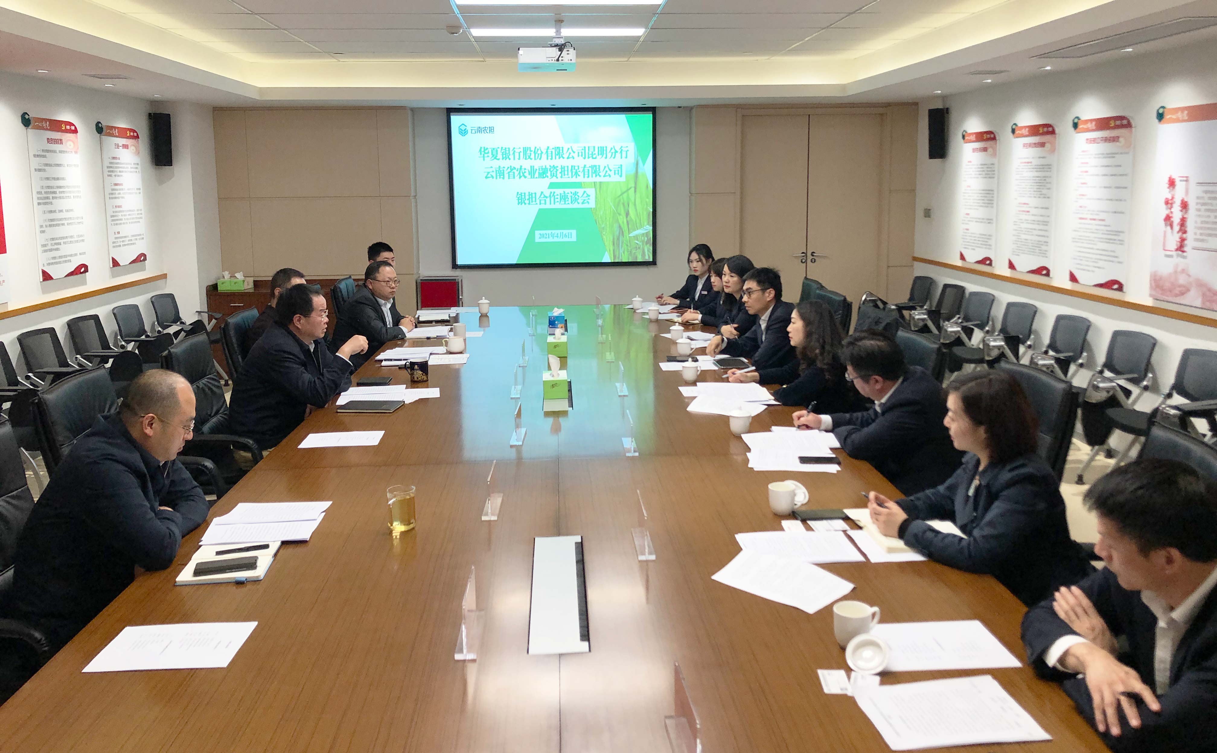 4月6日,云南农担与华夏银行昆明分行召开银担合作座谈会。华夏银行季少青副行长携授信审批部、普惠金融部、公司业务部、供应链业务金融部和金江支行负责人等参加会议。农担公司董事长杜开波、总经理李世伟、副总经理廖寅皓,业务发展部、风险控制部、战略发展部和昆明专营中心负责人参会。