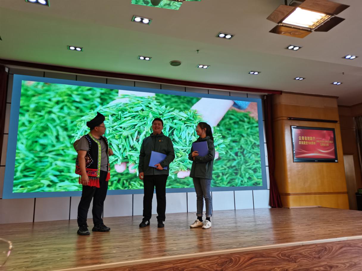 首场党课接力赛共有4个党支部组队参加,公司党总支作为最后一支参赛队出场。公司党总支参赛党课结合农担业务实际,以“助农路上感党恩”为主题,通过情景剧方式,从业务工作场景契入,以时间为轴,由13名党员职工分别演绎了扎西会议、云南第一个党支部建立、红军过迪庆故事、阿佤人民唱新歌、共克贫困奔小康等5个故事,深情讲述了云南党史上广为流传的红色故事、难忘的光辉时刻,以及党的好政策。公司党总支部副书记、董事长杜开波主持了讲党课活动。