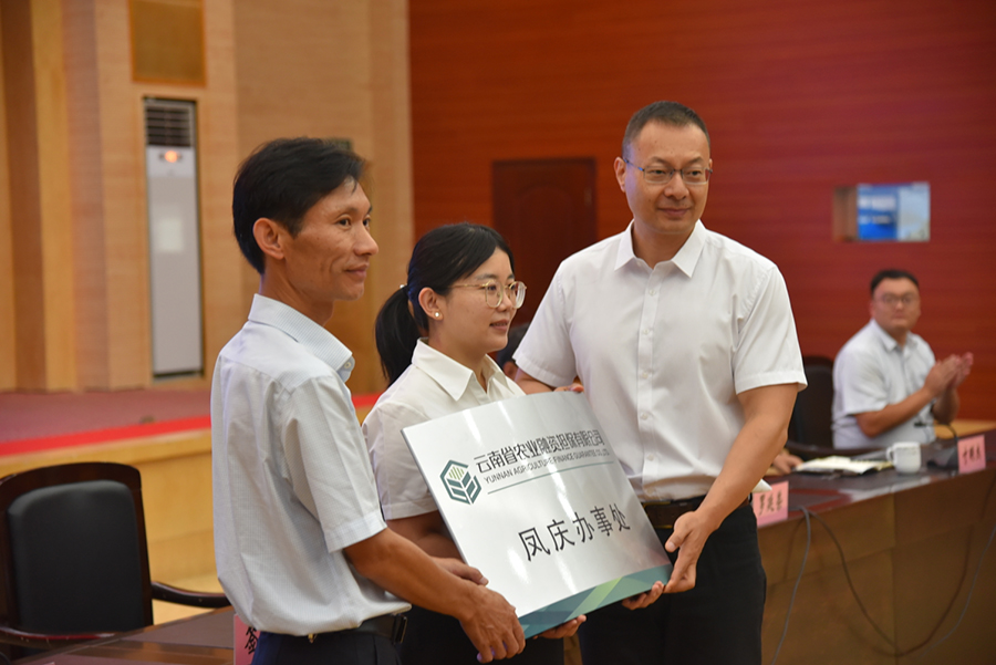 为进一步助推凤庆县农业产业振兴,发挥农担政策性担保作用,9月15日,云南省农担公司凤庆办事处授牌仪式在凤庆县会展中心报告厅顺利举行。公司总经理李世伟、战略发展部经理蔡菲、业务发展部副经理寸明杰,临沧市人民政府金融办公室主任罗廷荣、凤庆县委常委、县人民政府常务副县长陈正华、临沧市农业农村局副局长翟国军等领导出席会议。凤庆县各政府部门及凤庆县13个乡(镇)人民政府分管农业农村工作的领导,县人行及各金融机构主要负责人参加会议。