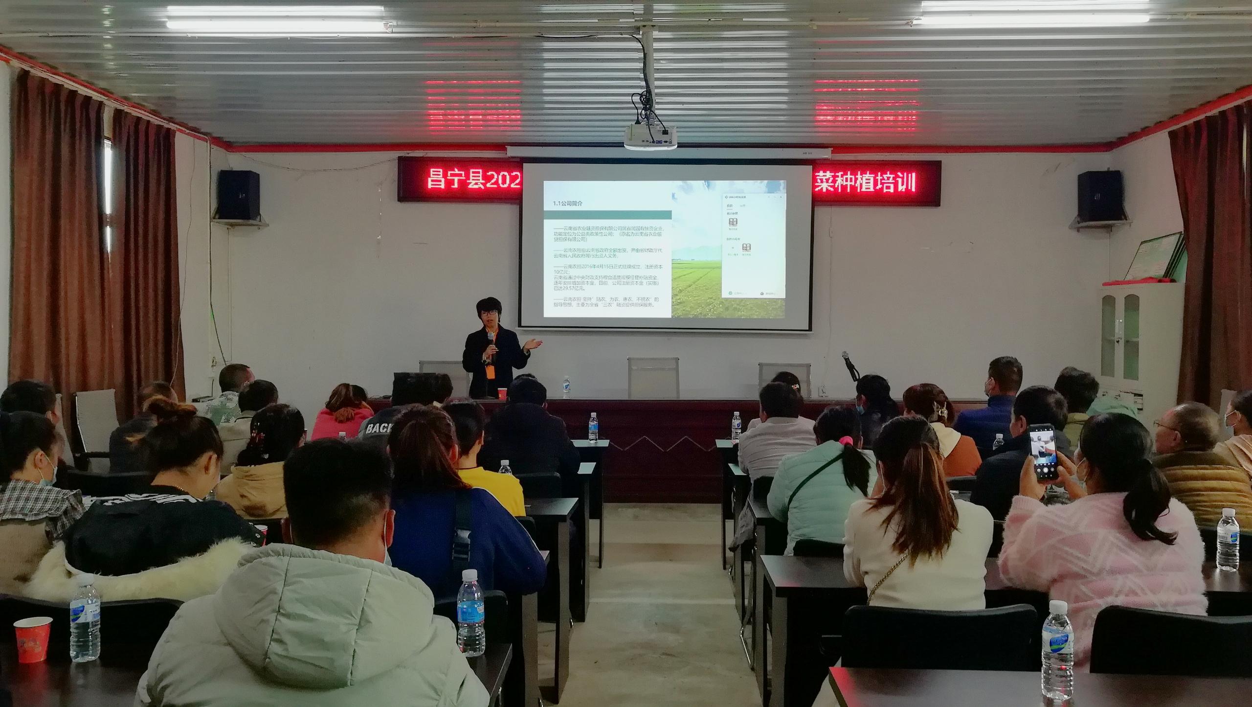 2021年12月8日,为了全面贯彻落实中央和省委一号文件精神,助力乡村振兴战略实施和世界一流“绿色食品牌”打造,根据农业农村部、国家农担联合召开的全国高素质农民融资担保工作视频会议精神,昌宁县农业农村局在柯街镇种子站举办2021年高素质农民培训会暨蔬菜种植培训会,农担公司保山办事处受邀参会,昌宁县农业农村局、农业广播学校相关领导、昌宁县域内52名农户代表参加会议。