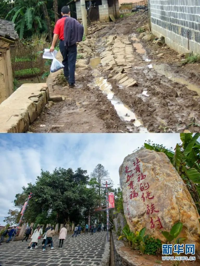 上图为司莫拉曾经的村内道路(腾冲市清水乡供图);下图为如今的司莫拉进村道路 赵普凡 摄