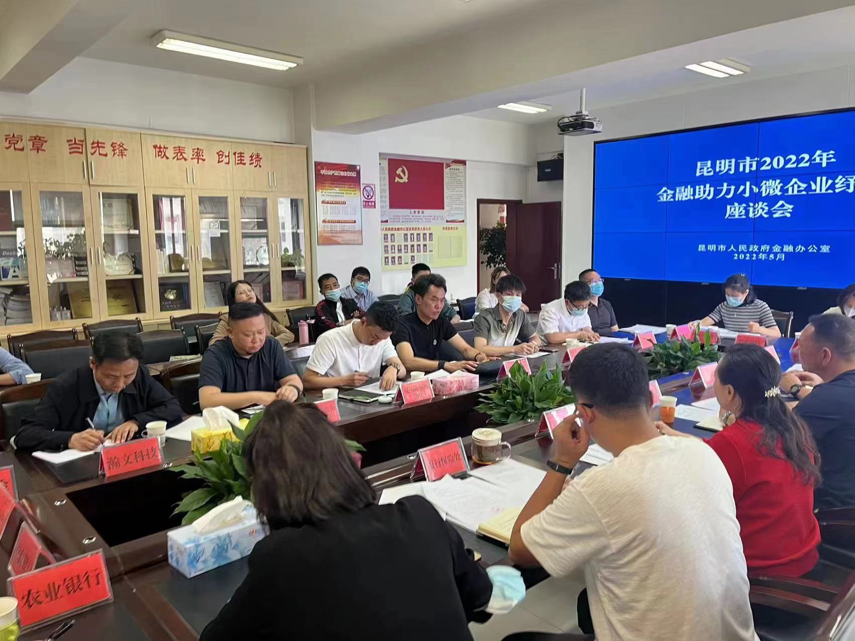 5月26日,为持续优化营商环境,全力做好昆明金融机构助力全市中小微企业纾困服务工作,昆明市金融办主持召开小微企业纾困座谈会。会议邀请银行、政策性担保公司、保险公司等在昆金融机构及受疫情影响较大的行业协会、小微企业代表参加。云南农担公司受邀,由廖寅皓副总经理携昆明专营中心副主任李少峰参会。