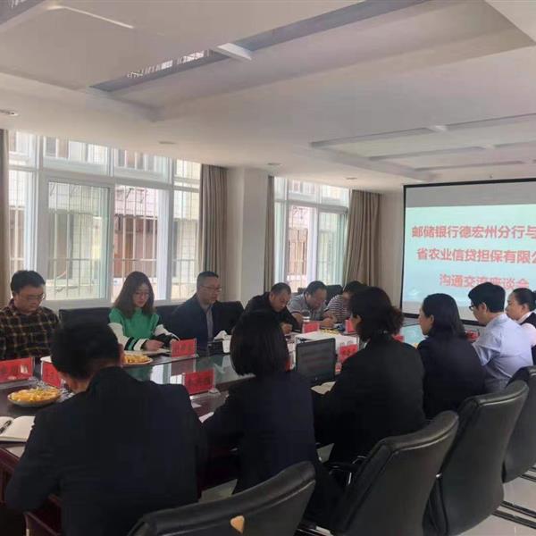 2月19日,农担公司副总经理廖寅皓一行携德宏办事处人员至邮储银行德宏州分行进行交流座谈。