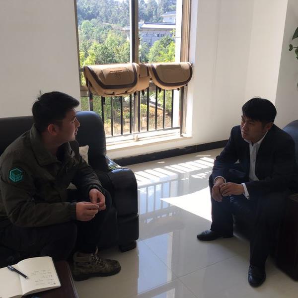 2月15日,红河县人民政府县委副书记赵健忠与云南农担公司红河办事处业务主管姚燕展开座谈