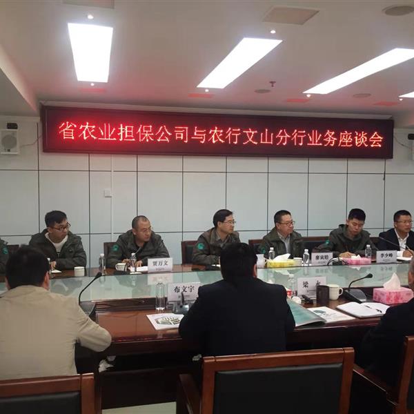 11月27日,省农担公司董事长郭影一行携文山、砚山办事处人员前往农业银行文山州分行参加座谈。