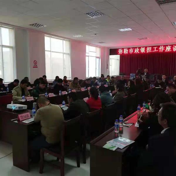 2018年11月28日,弥勒办事处负责人赵闫携办事处工作人员参加弥勒市政银担工作座谈会。