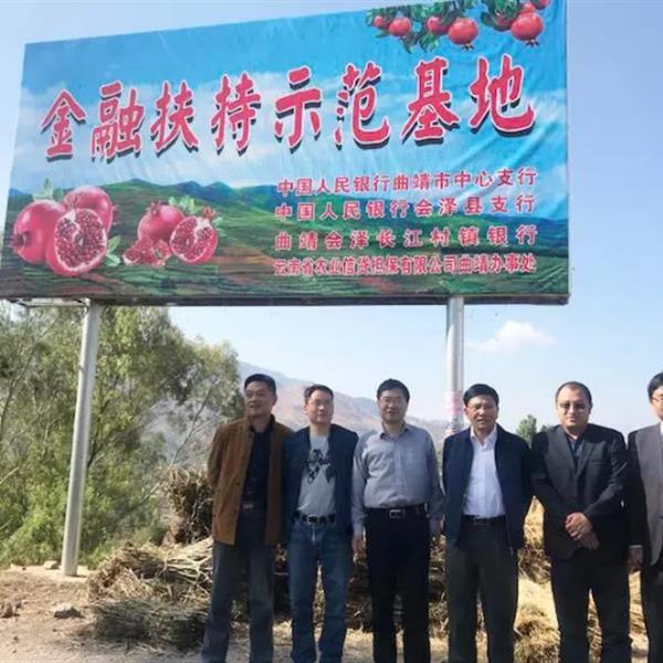 4月12日,农担公司董事长郭影与曲靖市财政局、会泽人行、会泽长江村镇银行及其他几家金融机构领导一行到会泽县娜姑镇干海子软籽石榴村进行实地考察调研。