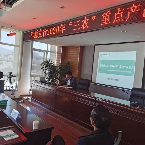 2020年1月15日,大理办事处业务人员董定臣、陈鹏、董莹、刘星宏受农业银行洱源县支行邀请,参加由其牵头举办的“2020年‘三农’重点产品推介会”。