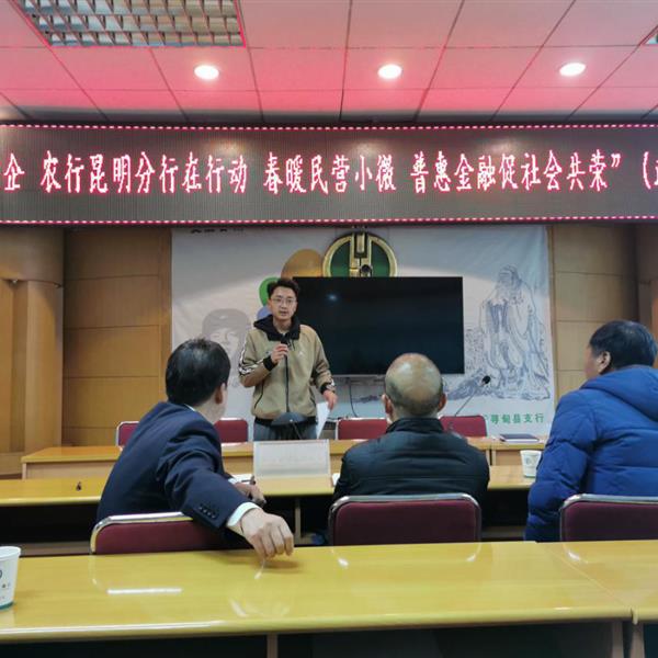 寻甸办事处参加“百行进万企,农行昆明分行在行动,春暖民营小微,普惠金融促社会共荣”(政)银企座谈会。