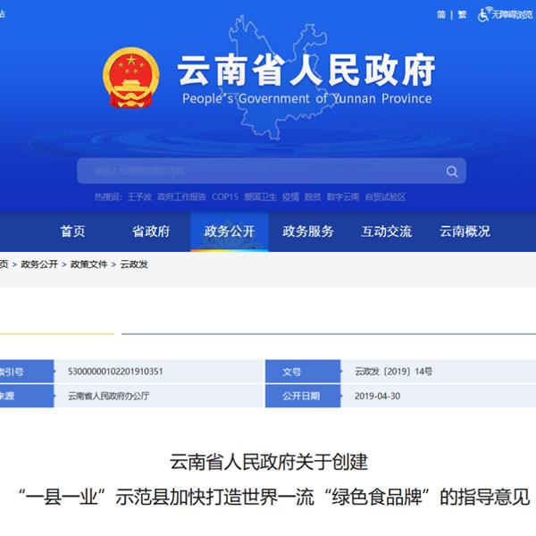 近日,云南省打造“绿色食品牌”工作领导小组办公室发布通知,公布了2022年度云南省“一县一业”示范创建县和特色县名单。