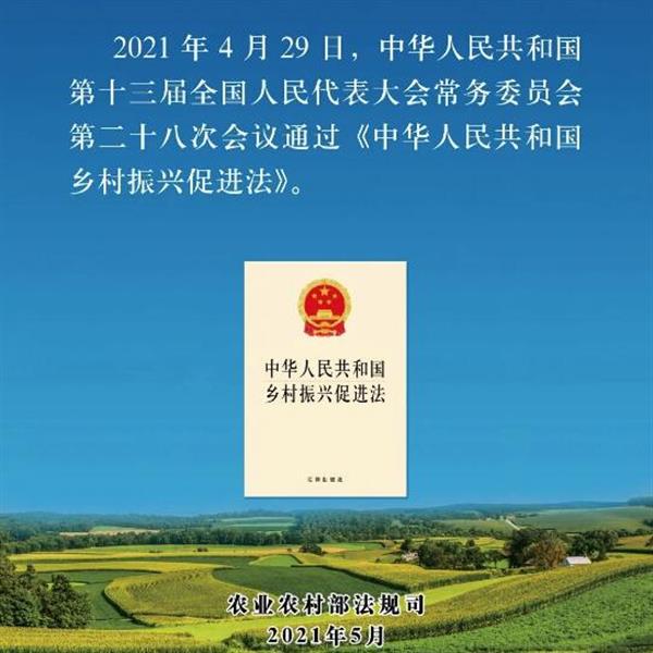 4月29日,十三届全国人大常委会第二十八次会议审议通过《中华人民共和国乡村振兴促进法》(以下简称乡村振兴促进法),并于6月1日起施行。